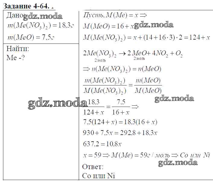 ГДЗ решение к заданию № 4-64 Химия 9 класс задачник Кузнецова Н.Е. Вентана-граф 2015 ФГОС бесплатно на гдз.мода!