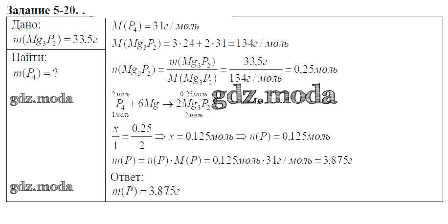ОТВЕТ на задание № 5-20 Задачник по Химии 9 класс Кузнецова Алгоритм успеха