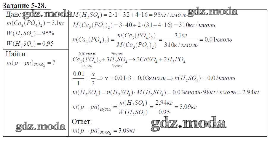 ГДЗ решение к заданию № 5-28 Химия 9 класс задачник Кузнецова Н.Е. Вентана-граф 2015 ФГОС бесплатно на гдз.мода!