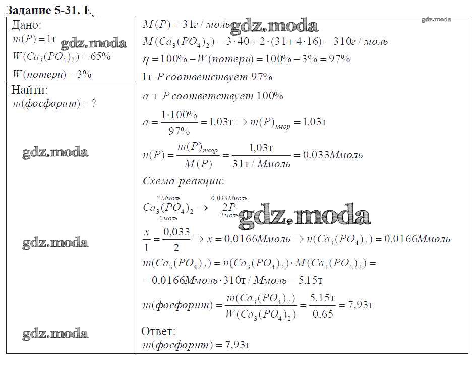 ГДЗ решение к заданию № 5-31 Химия 9 класс задачник Кузнецова Н.Е. Вентана-граф 2015 ФГОС бесплатно на гдз.мода!