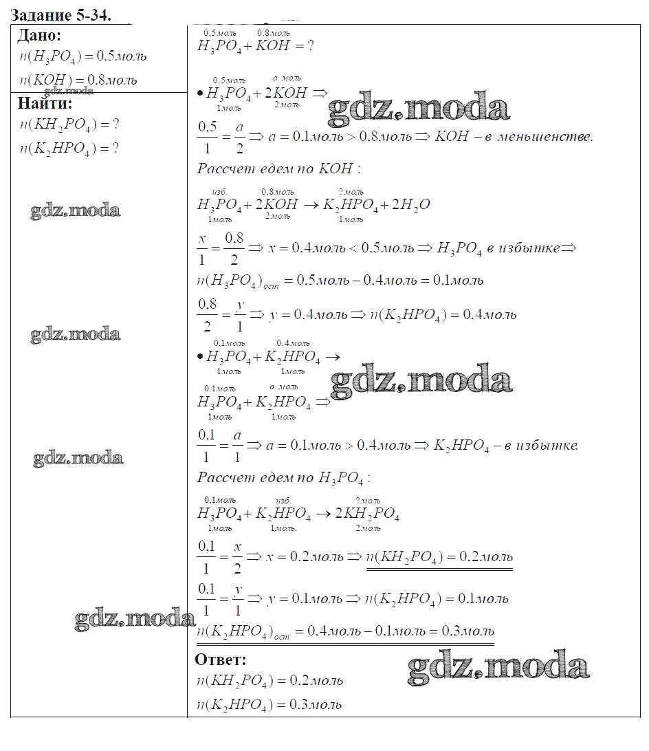 ГДЗ решение к заданию № 5-34 Химия 9 класс задачник Кузнецова Н.Е. Вентана-граф 2015 ФГОС бесплатно на гдз.мода!