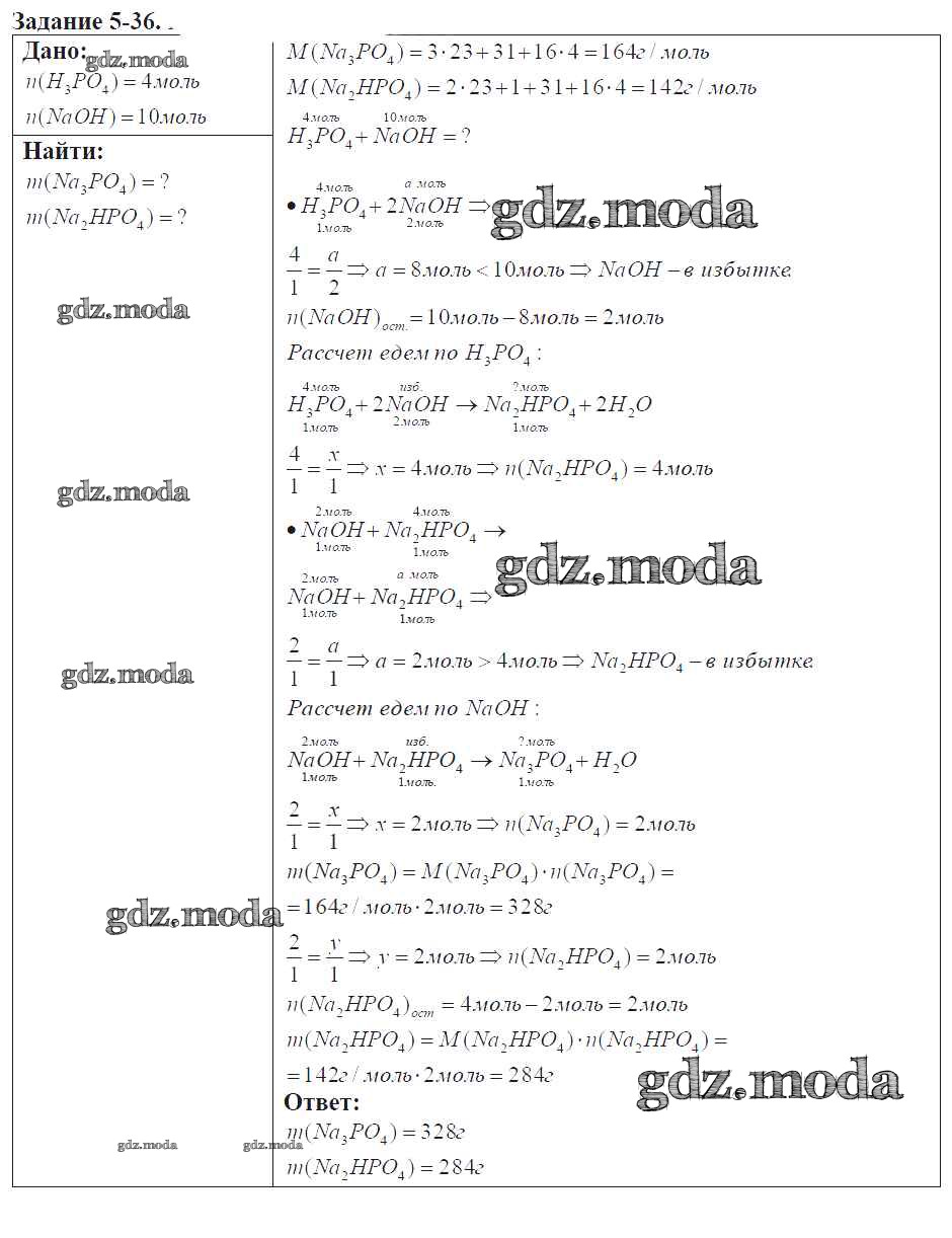 ГДЗ решение к заданию № 5-36 Химия 9 класс задачник Кузнецова Н.Е. Вентана-граф 2015 ФГОС бесплатно на гдз.мода!