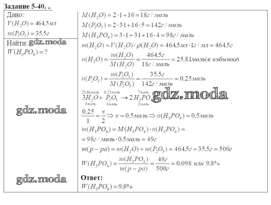 ГДЗ решение к заданию № 5-40 Химия 9 класс задачник Кузнецова Н.Е. Вентана-граф 2015 ФГОС бесплатно на гдз.мода!