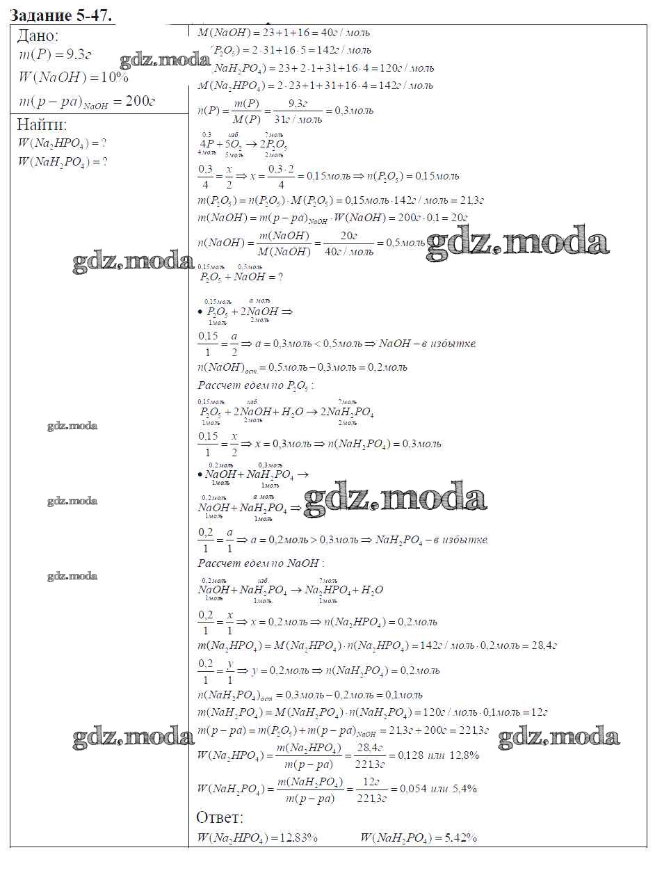 ГДЗ решение к заданию № 5-47 Химия 9 класс задачник Кузнецова Н.Е. Вентана-граф 2015 ФГОС бесплатно на гдз.мода!
