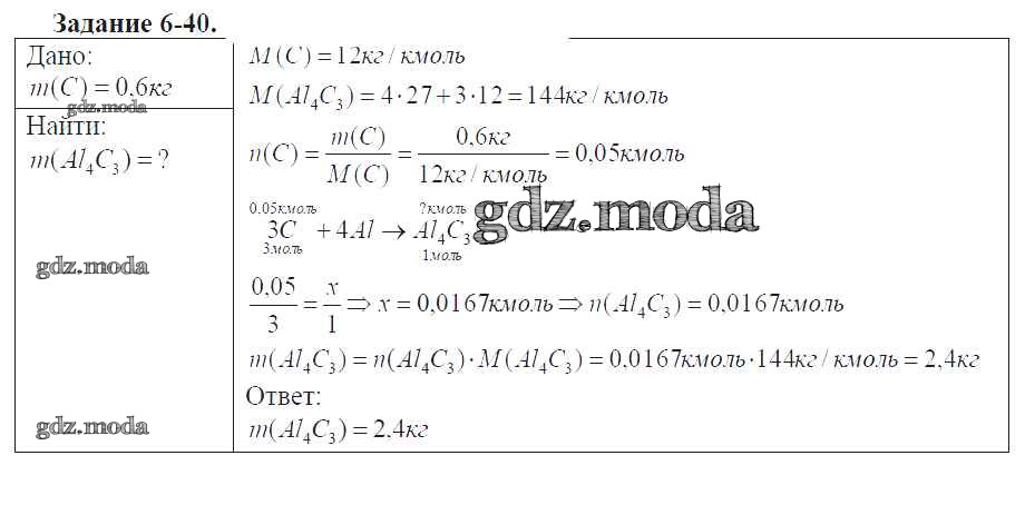 ОТВЕТ на задание № 6-40 Задачник по Химии 9 класс Кузнецова Алгоритм успеха
