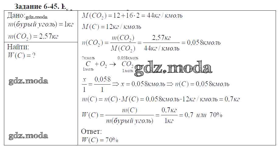 ГДЗ решение к заданию № 6-45 Химия 9 класс задачник Кузнецова Н.Е. Вентана-граф 2015 ФГОС бесплатно на гдз.мода!