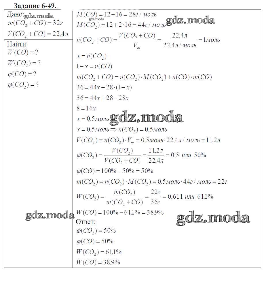 ГДЗ решение к заданию № 6-49 Химия 9 класс задачник Кузнецова Н.Е. Вентана-граф 2015 ФГОС бесплатно на гдз.мода!