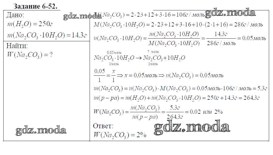 ГДЗ решение к заданию № 6-52 Химия 9 класс задачник Кузнецова Н.Е. Вентана-граф 2015 ФГОС бесплатно на гдз.мода!