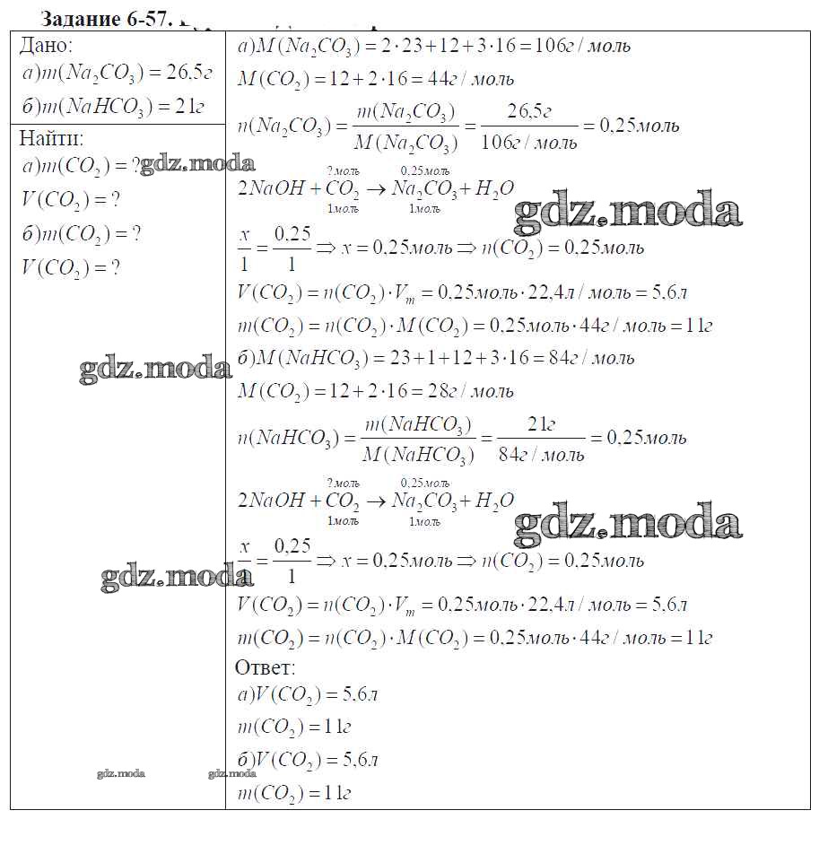 ГДЗ решение к заданию № 6-57 Химия 9 класс задачник Кузнецова Н.Е. Вентана-граф 2015 ФГОС бесплатно на гдз.мода!