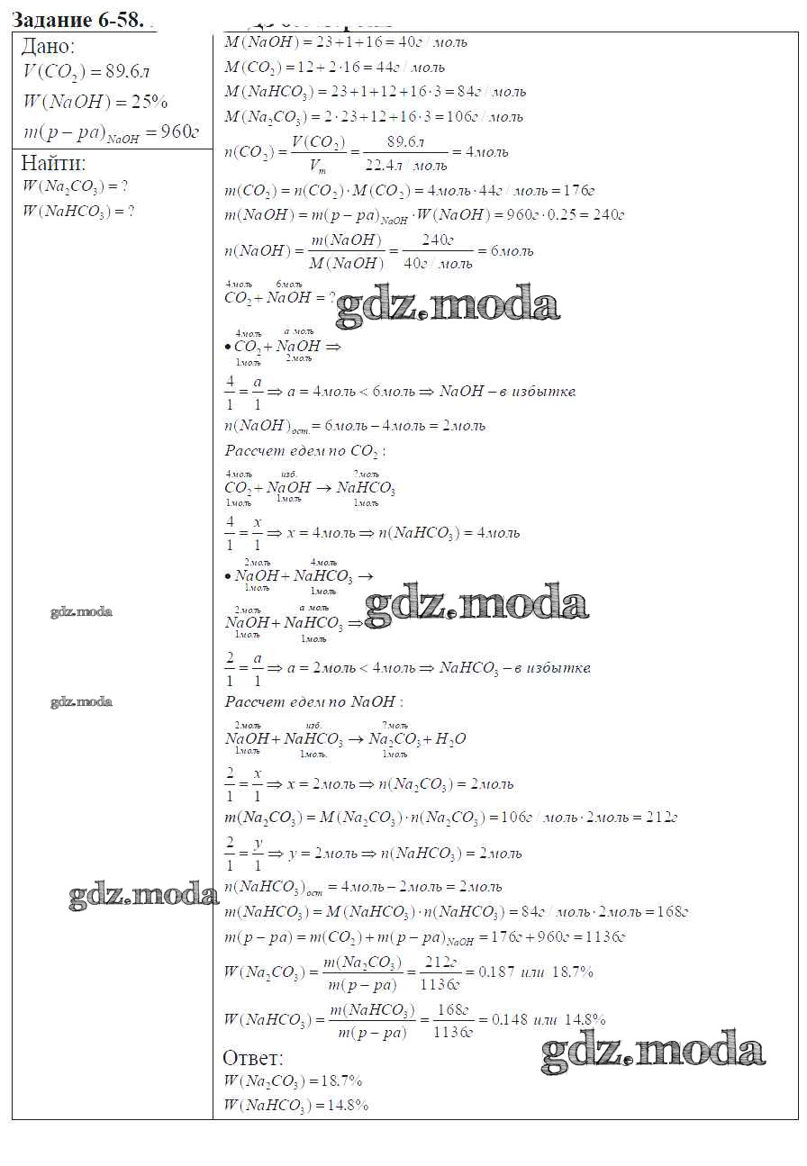ГДЗ решение к заданию № 6-58 Химия 9 класс задачник Кузнецова Н.Е. Вентана-граф 2015 ФГОС бесплатно на гдз.мода!