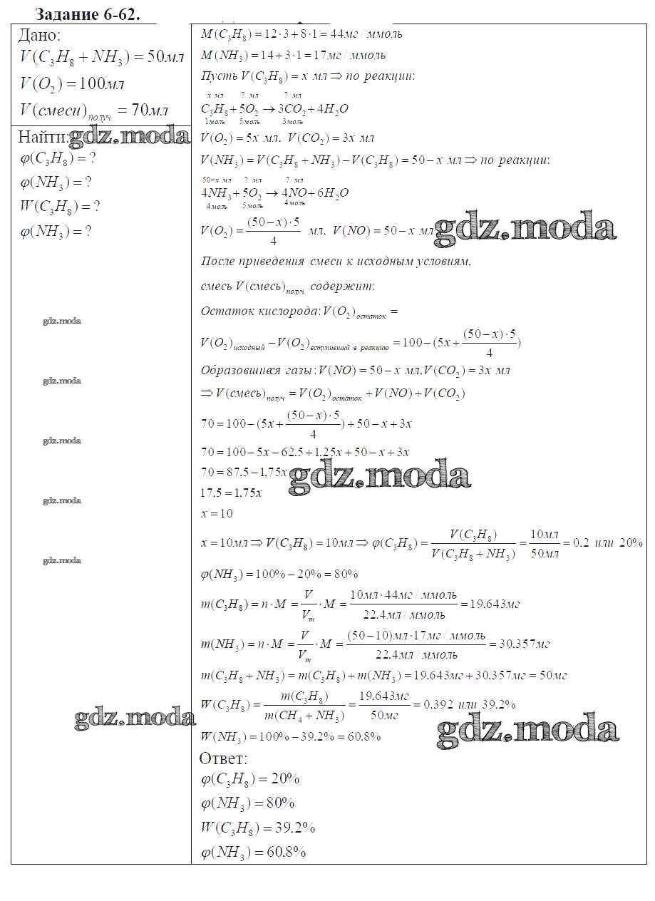 ГДЗ решение к заданию № 6-62 Химия 9 класс задачник Кузнецова Н.Е. Вентана-граф 2015 ФГОС бесплатно на гдз.мода!