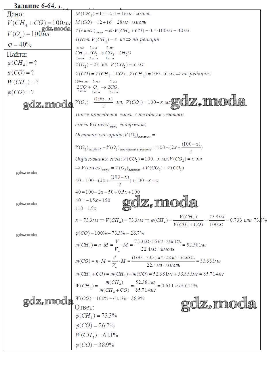 ГДЗ решение к заданию № 6-64 Химия 9 класс задачник Кузнецова Н.Е. Вентана-граф 2015 ФГОС бесплатно на гдз.мода!