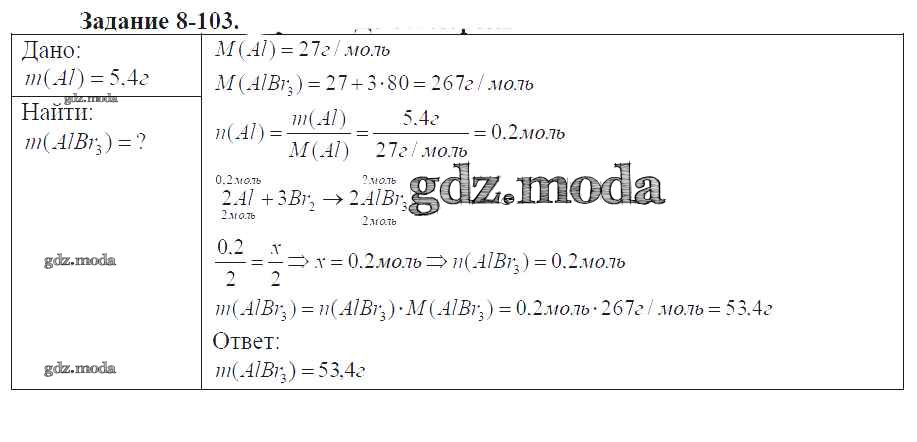 ГДЗ решение к заданию № 8-103 Химия 9 класс задачник Кузнецова Н.Е. Вентана-граф 2015 ФГОС бесплатно на гдз.мода!
