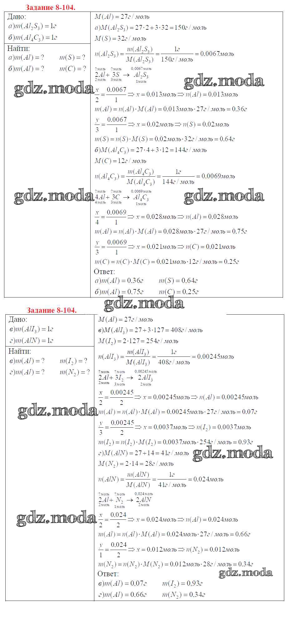 ГДЗ решение к заданию № 8-104 Химия 9 класс задачник Кузнецова Н.Е. Вентана-граф 2015 ФГОС бесплатно на гдз.мода!