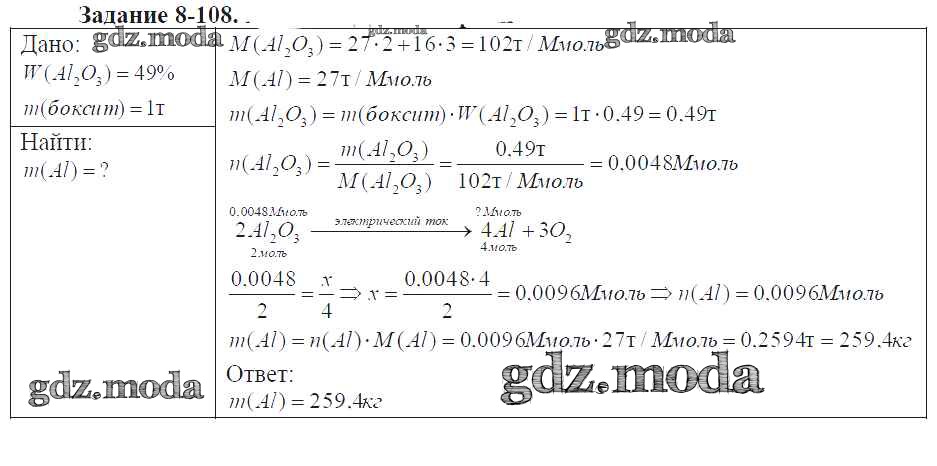 ГДЗ решение к заданию № 8-108 Химия 9 класс задачник Кузнецова Н.Е. Вентана-граф 2015 ФГОС бесплатно на гдз.мода!