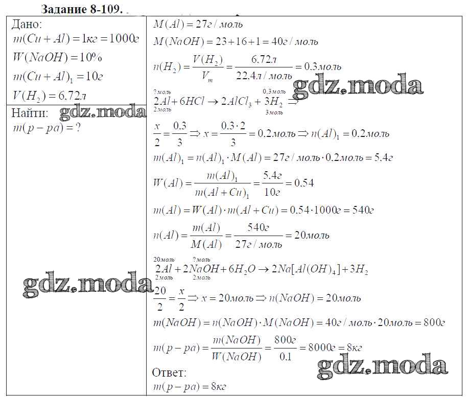 ГДЗ решение к заданию № 8-109 Химия 9 класс задачник Кузнецова Н.Е. Вентана-граф 2015 ФГОС бесплатно на гдз.мода!