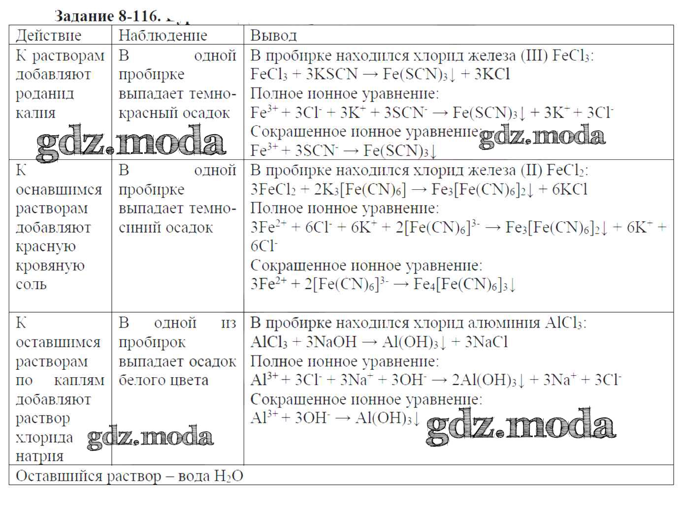 ГДЗ решение к заданию № 8-116 Химия 9 класс задачник Кузнецова Н.Е. Вентана-граф 2015 ФГОС бесплатно на гдз.мода!