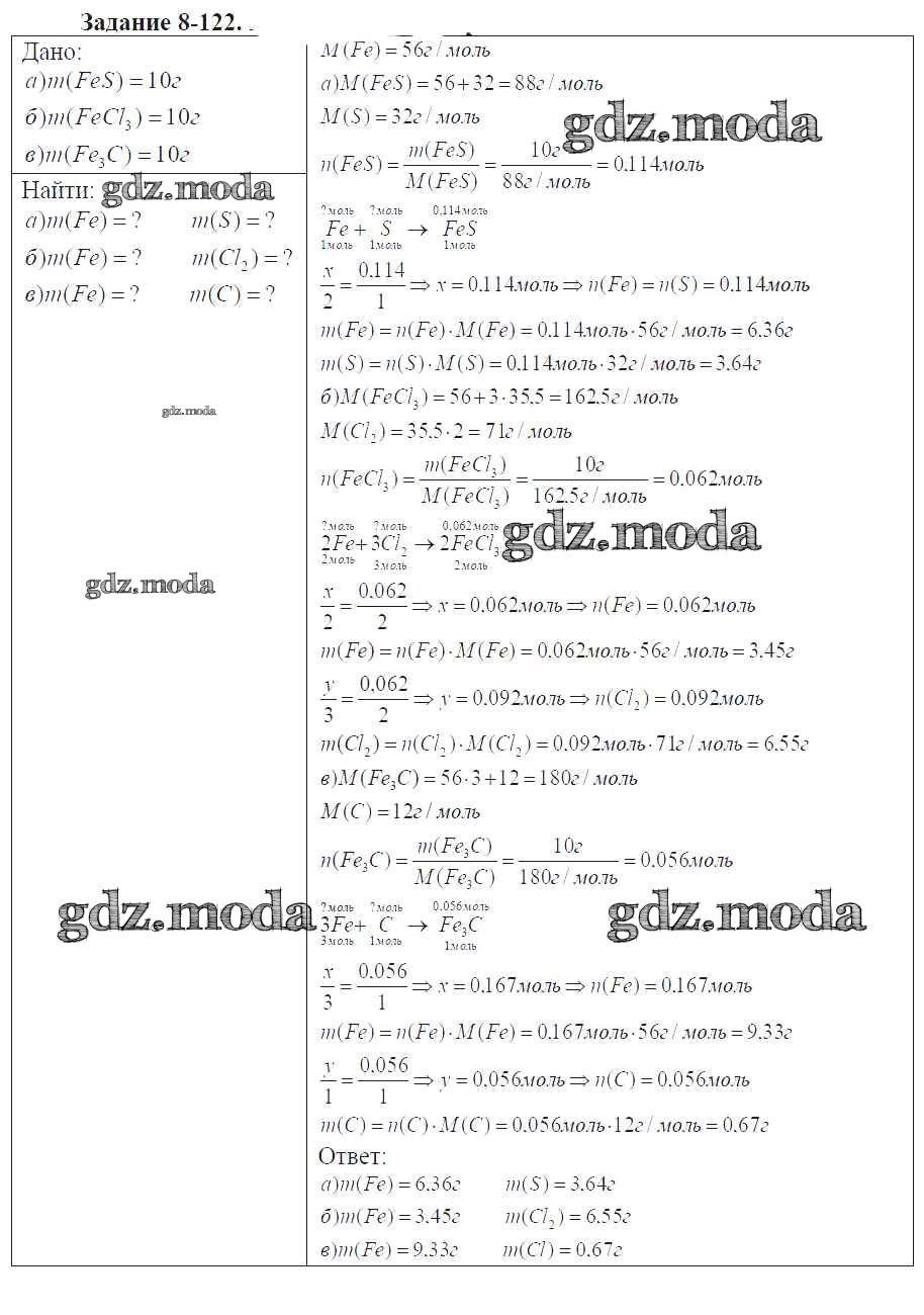 ГДЗ решение к заданию № 8-122 Химия 9 класс задачник Кузнецова Н.Е. Вентана-граф 2015 ФГОС бесплатно на гдз.мода!