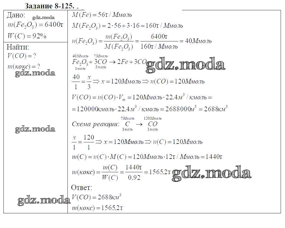 ГДЗ решение к заданию № 8-125 Химия 9 класс задачник Кузнецова Н.Е. Вентана-граф 2015 ФГОС бесплатно на гдз.мода!