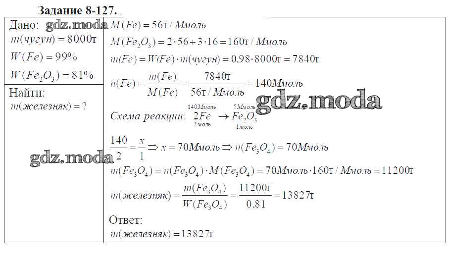 ГДЗ решение к заданию № 8-127 Химия 9 класс задачник Кузнецова Н.Е. Вентана-граф 2015 ФГОС бесплатно на гдз.мода!