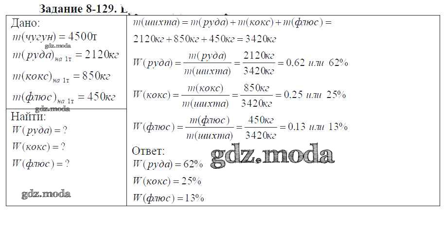 ГДЗ решение к заданию № 8-129 Химия 9 класс задачник Кузнецова Н.Е. Вентана-граф 2015 ФГОС бесплатно на гдз.мода!