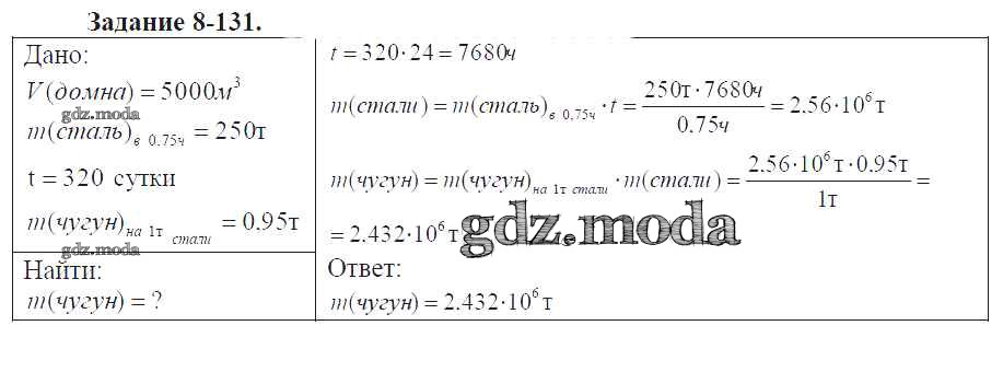 ГДЗ решение к заданию № 8-131 Химия 9 класс задачник Кузнецова Н.Е. Вентана-граф 2015 ФГОС бесплатно на гдз.мода!