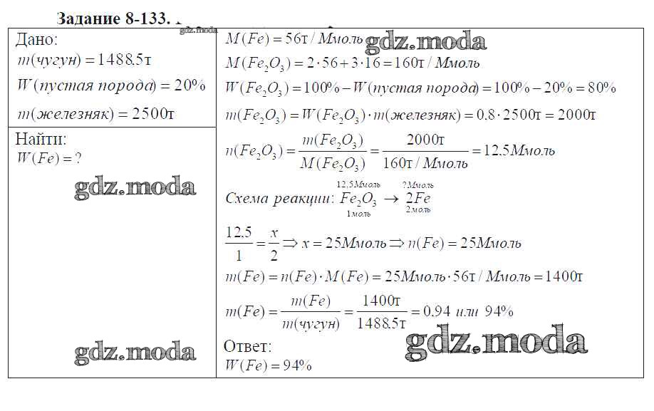 ГДЗ решение к заданию № 8-133 Химия 9 класс задачник Кузнецова Н.Е. Вентана-граф 2015 ФГОС бесплатно на гдз.мода!