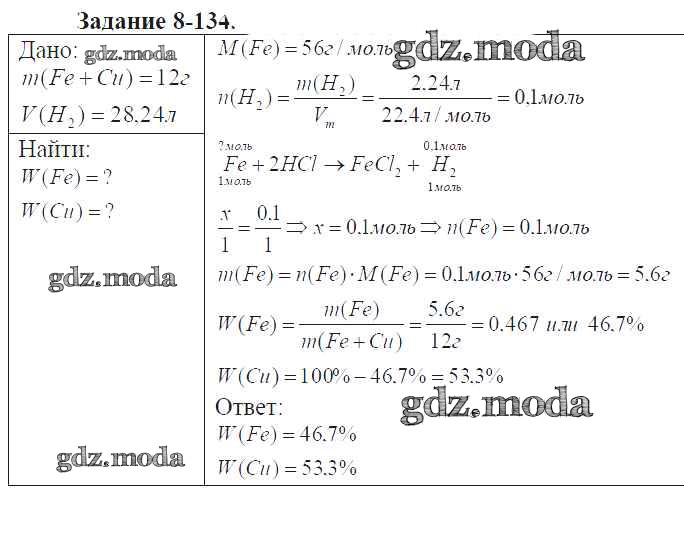 ГДЗ решение к заданию № 8-134 Химия 9 класс задачник Кузнецова Н.Е. Вентана-граф 2015 ФГОС бесплатно на гдз.мода!