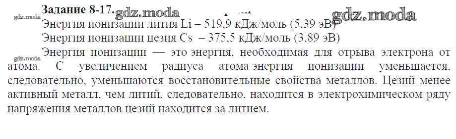 ОТВЕТ на задание № 8-17 Задачник по Химии 9 класс Кузнецова Алгоритм успеха