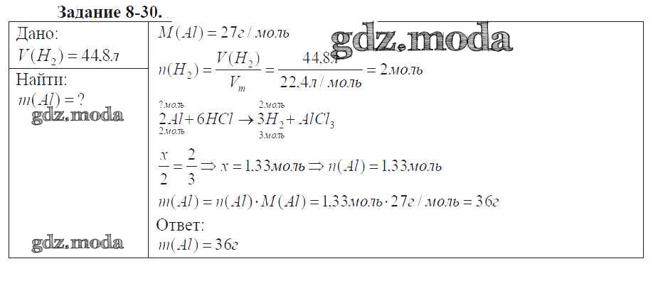 ГДЗ решение к заданию № 8-30 Химия 9 класс задачник Кузнецова Н.Е. Вентана-граф 2015 ФГОС бесплатно на гдз.мода!