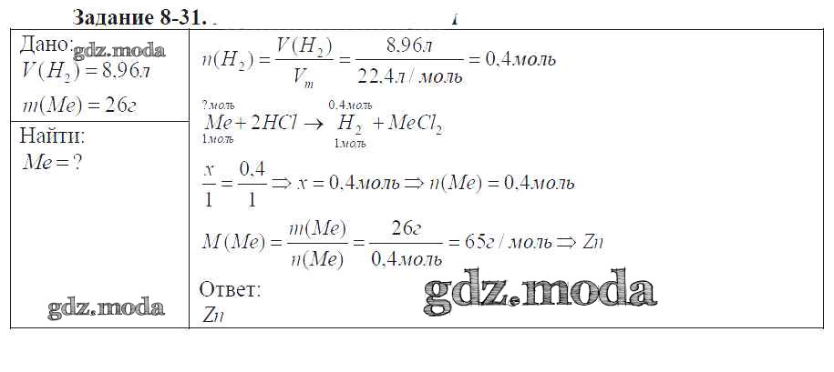 ГДЗ решение к заданию № 8-31 Химия 9 класс задачник Кузнецова Н.Е. Вентана-граф 2015 ФГОС бесплатно на гдз.мода!