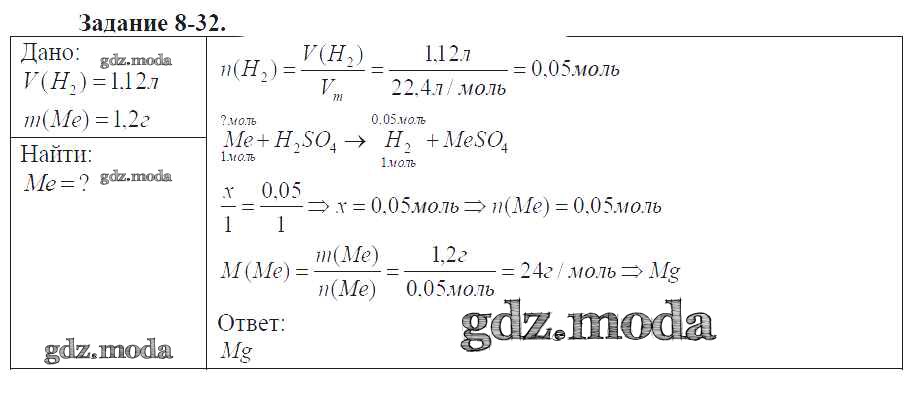 ГДЗ решение к заданию № 8-32 Химия 9 класс задачник Кузнецова Н.Е. Вентана-граф 2015 ФГОС бесплатно на гдз.мода!
