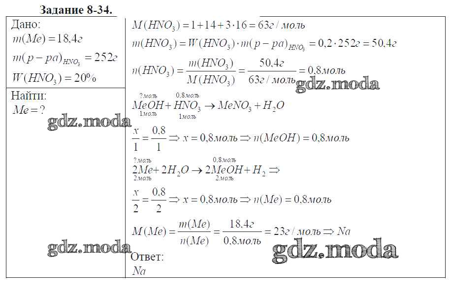 ГДЗ решение к заданию № 8-34 Химия 9 класс задачник Кузнецова Н.Е. Вентана-граф 2015 ФГОС бесплатно на гдз.мода!
