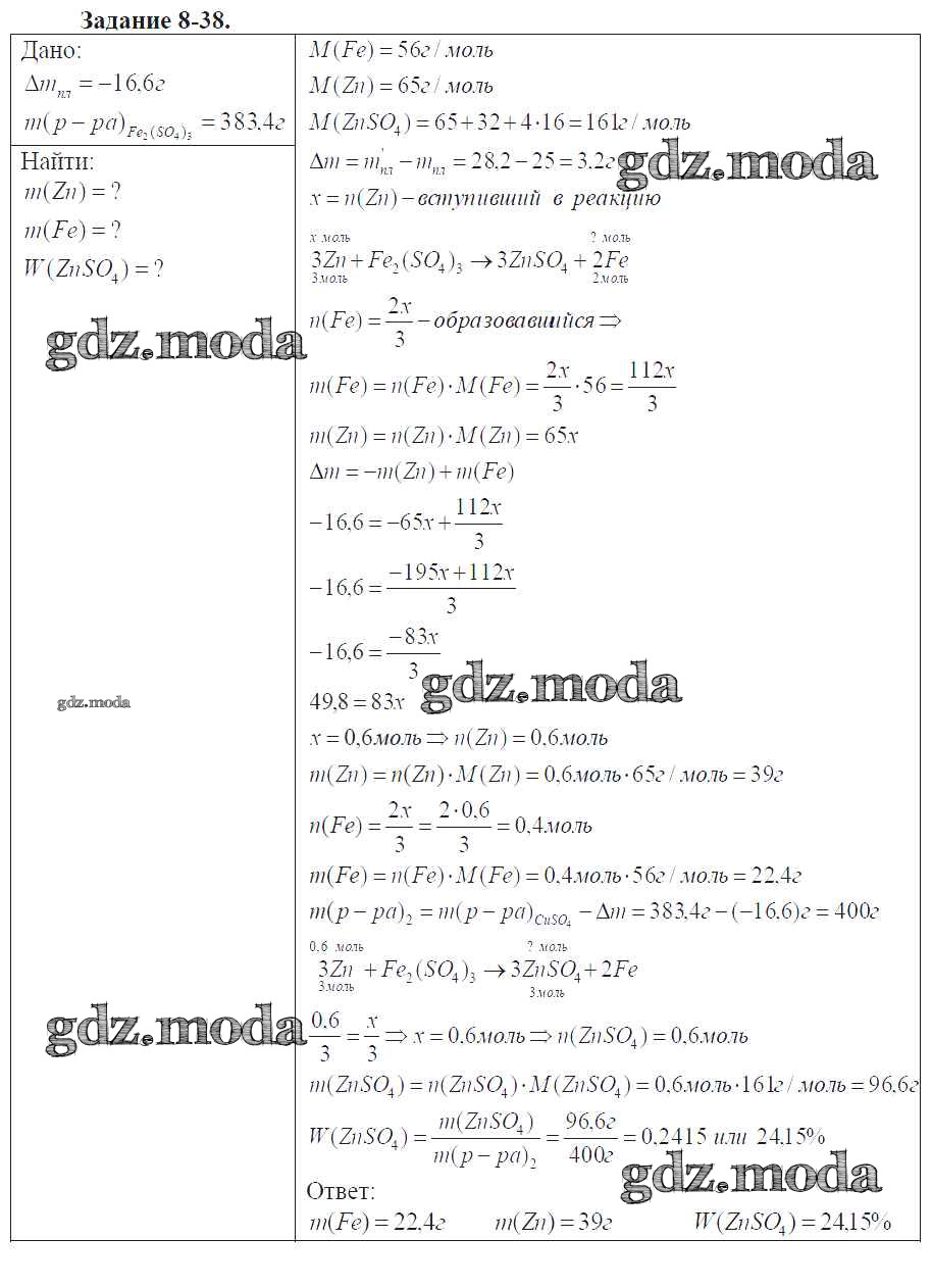 ГДЗ решение к заданию № 8-38 Химия 9 класс задачник Кузнецова Н.Е. Вентана-граф 2015 ФГОС бесплатно на гдз.мода!