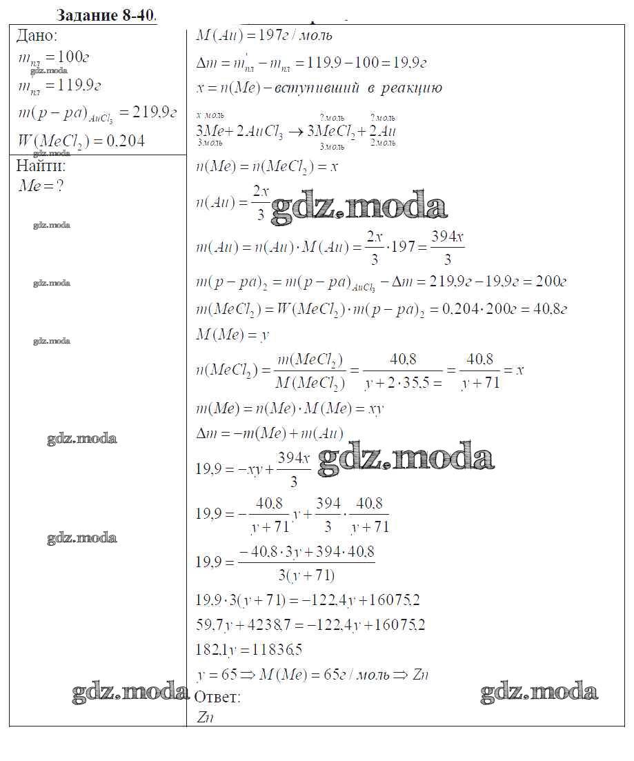 ГДЗ решение к заданию № 8-40 Химия 9 класс задачник Кузнецова Н.Е. Вентана-граф 2015 ФГОС бесплатно на гдз.мода!
