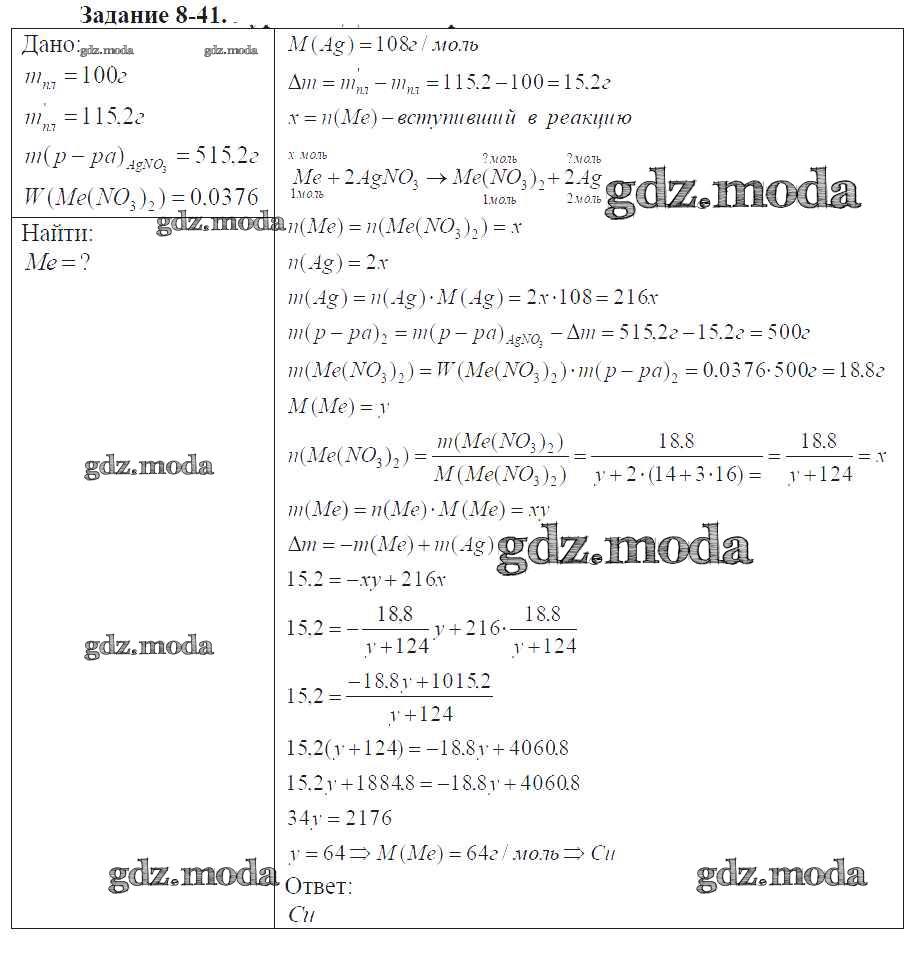 ГДЗ решение к заданию № 8-41 Химия 9 класс задачник Кузнецова Н.Е. Вентана-граф 2015 ФГОС бесплатно на гдз.мода!
