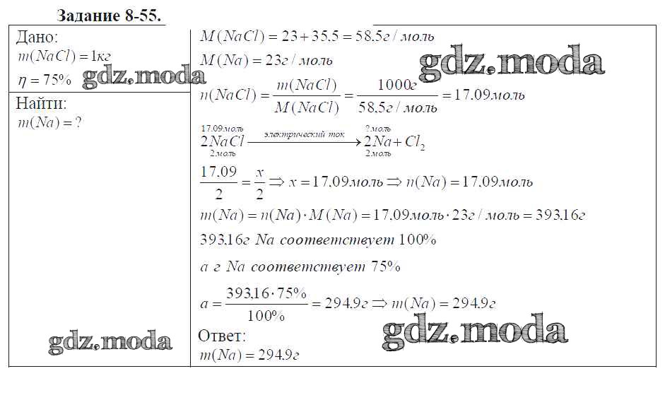 ГДЗ решение к заданию № 8-55 Химия 9 класс задачник Кузнецова Н.Е. Вентана-граф 2015 ФГОС бесплатно на гдз.мода!
