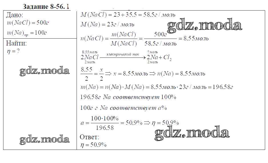 ГДЗ решение к заданию № 8-56 Химия 9 класс задачник Кузнецова Н.Е. Вентана-граф 2015 ФГОС бесплатно на гдз.мода!
