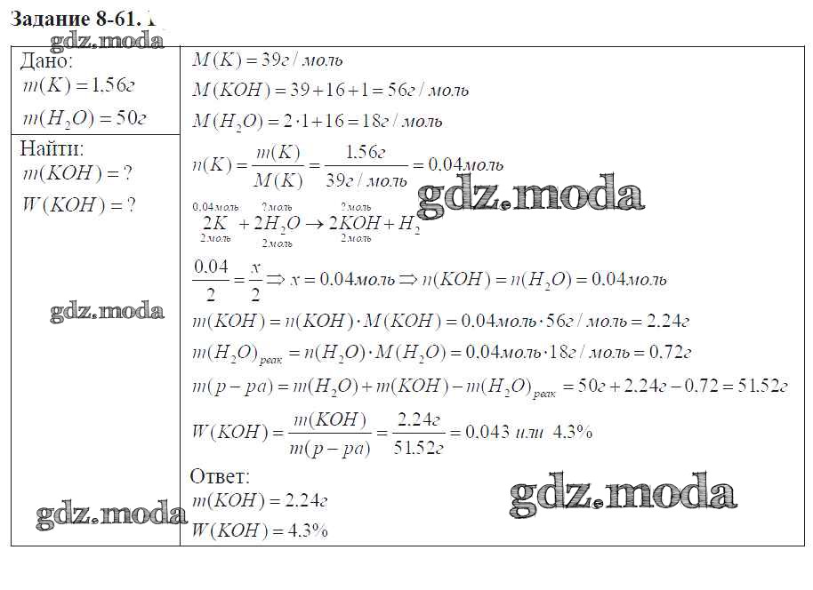 ГДЗ решение к заданию № 8-61 Химия 9 класс задачник Кузнецова Н.Е. Вентана-граф 2015 ФГОС бесплатно на гдз.мода!