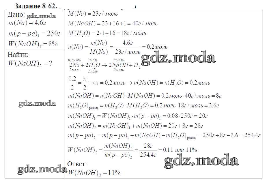 ГДЗ решение к заданию № 8-62 Химия 9 класс задачник Кузнецова Н.Е. Вентана-граф 2015 ФГОС бесплатно на гдз.мода!