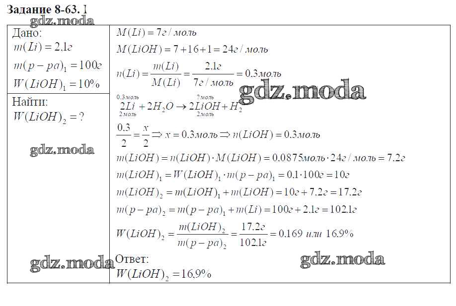 ГДЗ решение к заданию № 8-63 Химия 9 класс задачник Кузнецова Н.Е. Вентана-граф 2015 ФГОС бесплатно на гдз.мода!