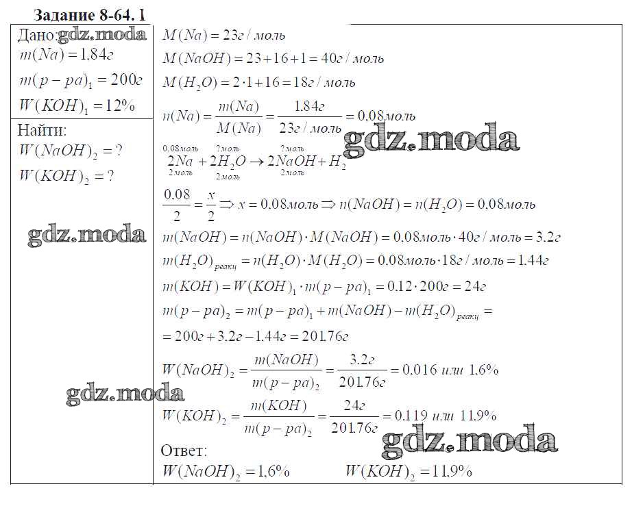 ГДЗ решение к заданию № 8-64 Химия 9 класс задачник Кузнецова Н.Е. Вентана-граф 2015 ФГОС бесплатно на гдз.мода!