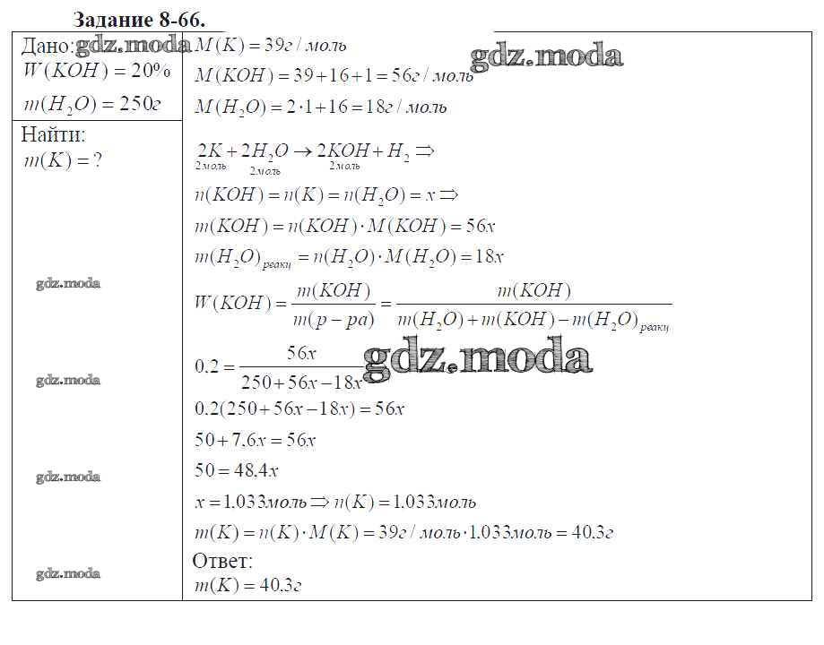 ГДЗ решение к заданию № 8-66 Химия 9 класс задачник Кузнецова Н.Е. Вентана-граф 2015 ФГОС бесплатно на гдз.мода!