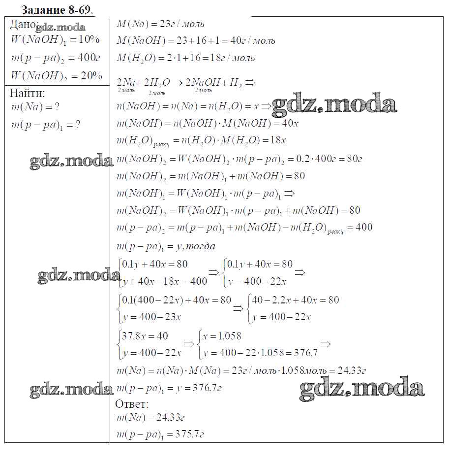 ГДЗ решение к заданию № 8-69 Химия 9 класс задачник Кузнецова Н.Е. Вентана-граф 2015 ФГОС бесплатно на гдз.мода!