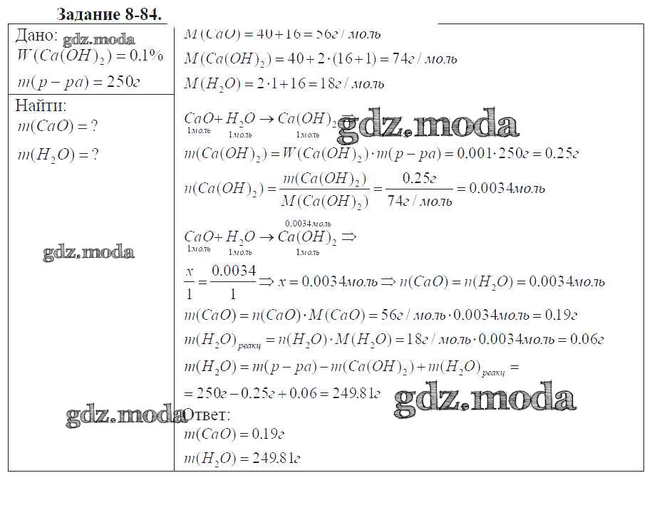 ГДЗ решение к заданию № 8-84 Химия 9 класс задачник Кузнецова Н.Е. Вентана-граф 2015 ФГОС бесплатно на гдз.мода!