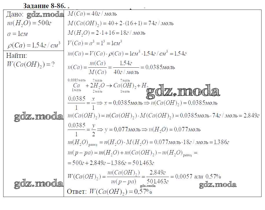 ГДЗ решение к заданию № 8-86 Химия 9 класс задачник Кузнецова Н.Е. Вентана-граф 2015 ФГОС бесплатно на гдз.мода!