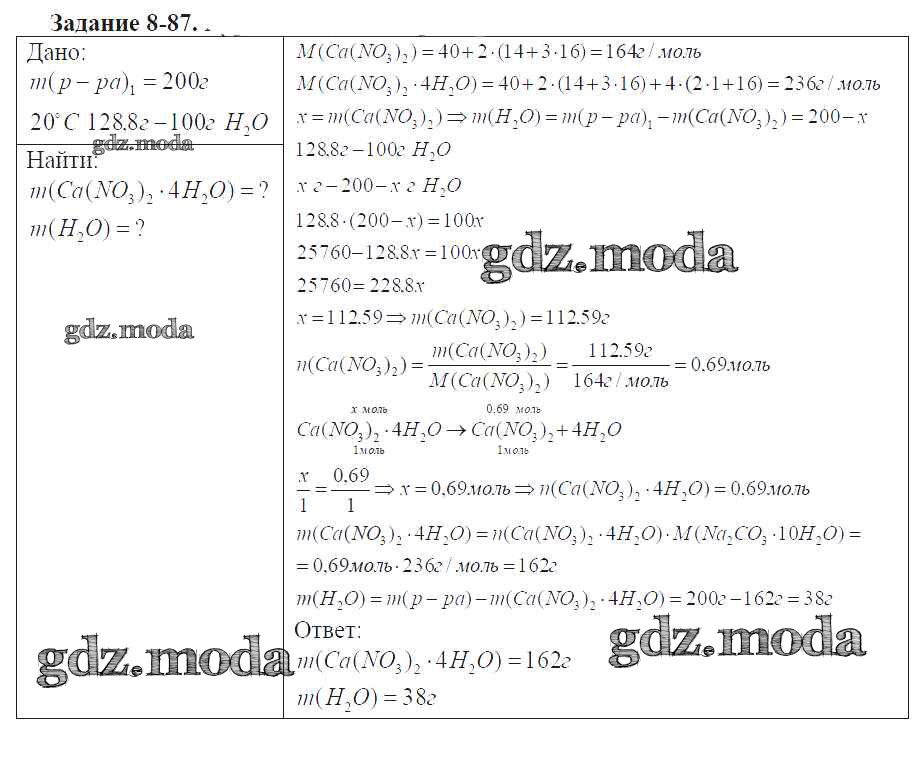 ГДЗ решение к заданию № 8-87 Химия 9 класс задачник Кузнецова Н.Е. Вентана-граф 2015 ФГОС бесплатно на гдз.мода!