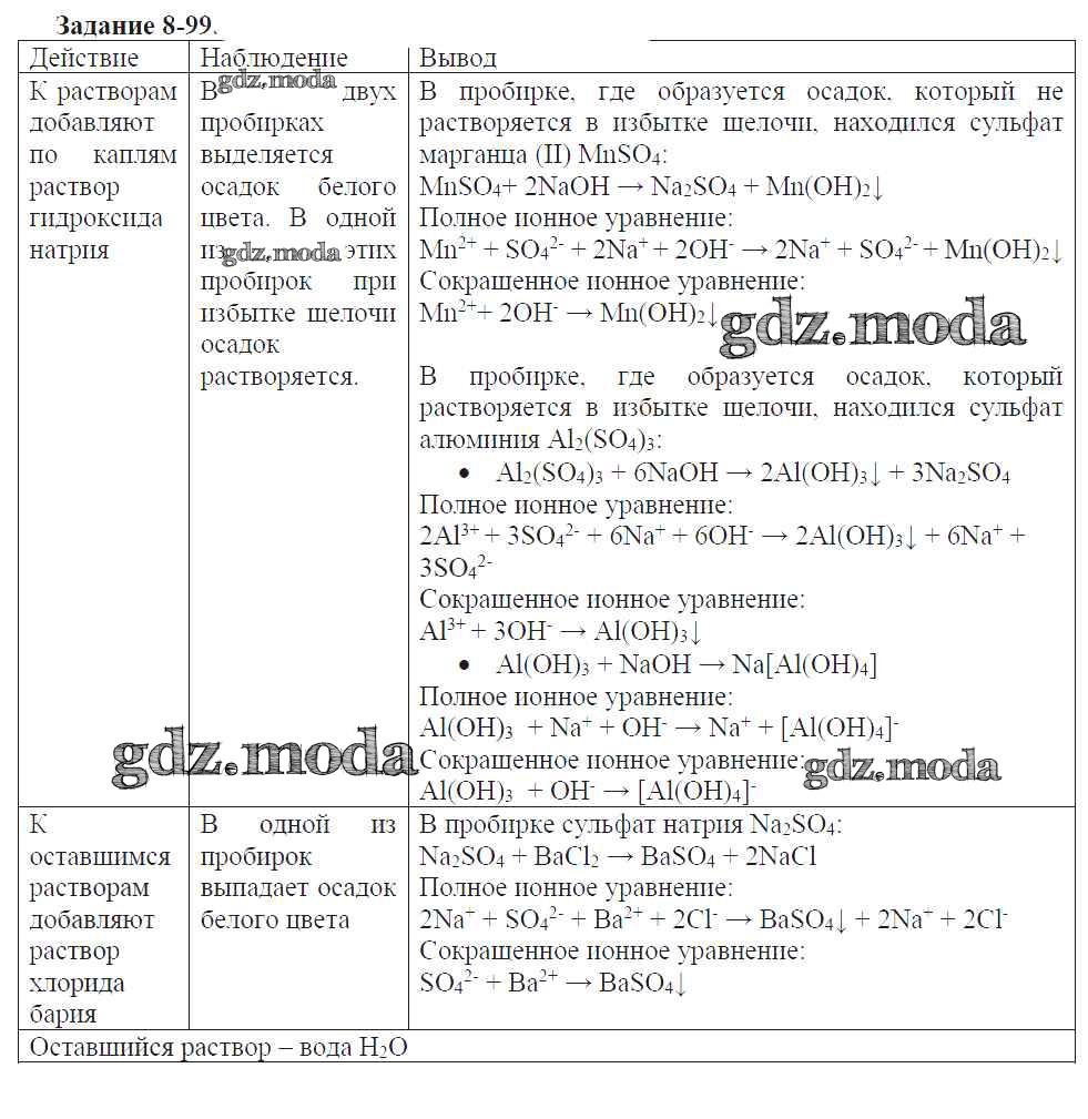 ГДЗ решение к заданию № 8-99 Химия 9 класс задачник Кузнецова Н.Е. Вентана-граф 2015 ФГОС бесплатно на гдз.мода!