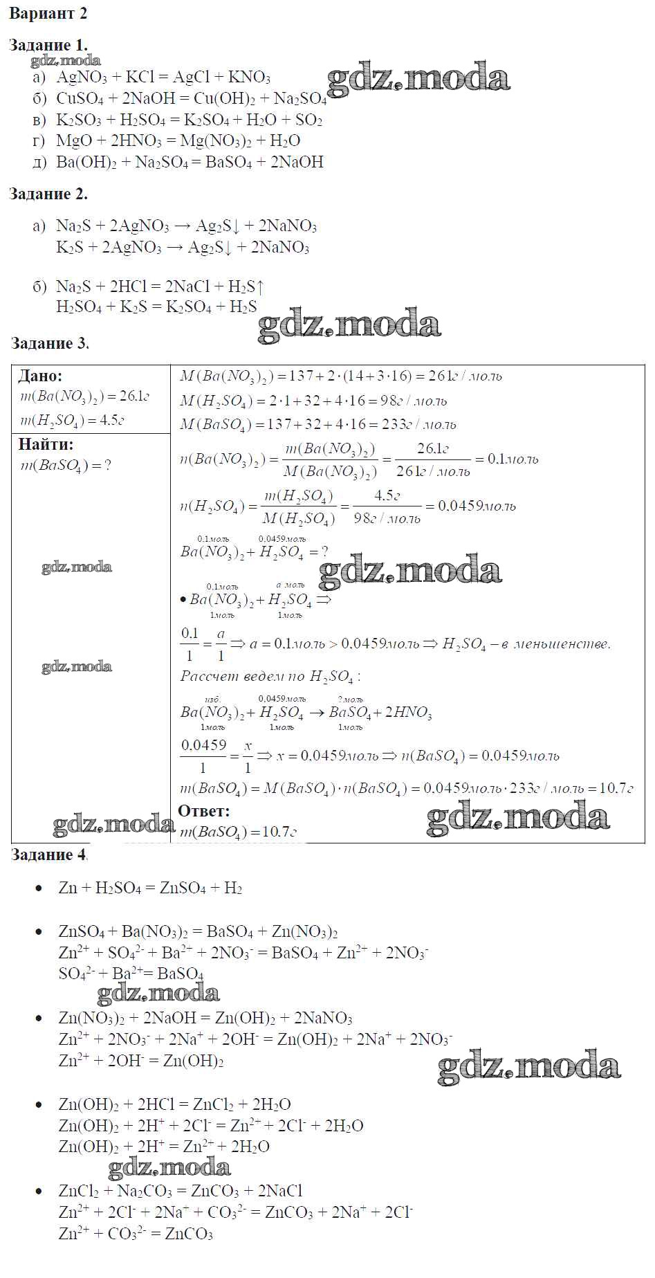 ОТВЕТ на задание № вариант-2 Задачник по Химии 9 класс Кузнецова Алгоритм успеха