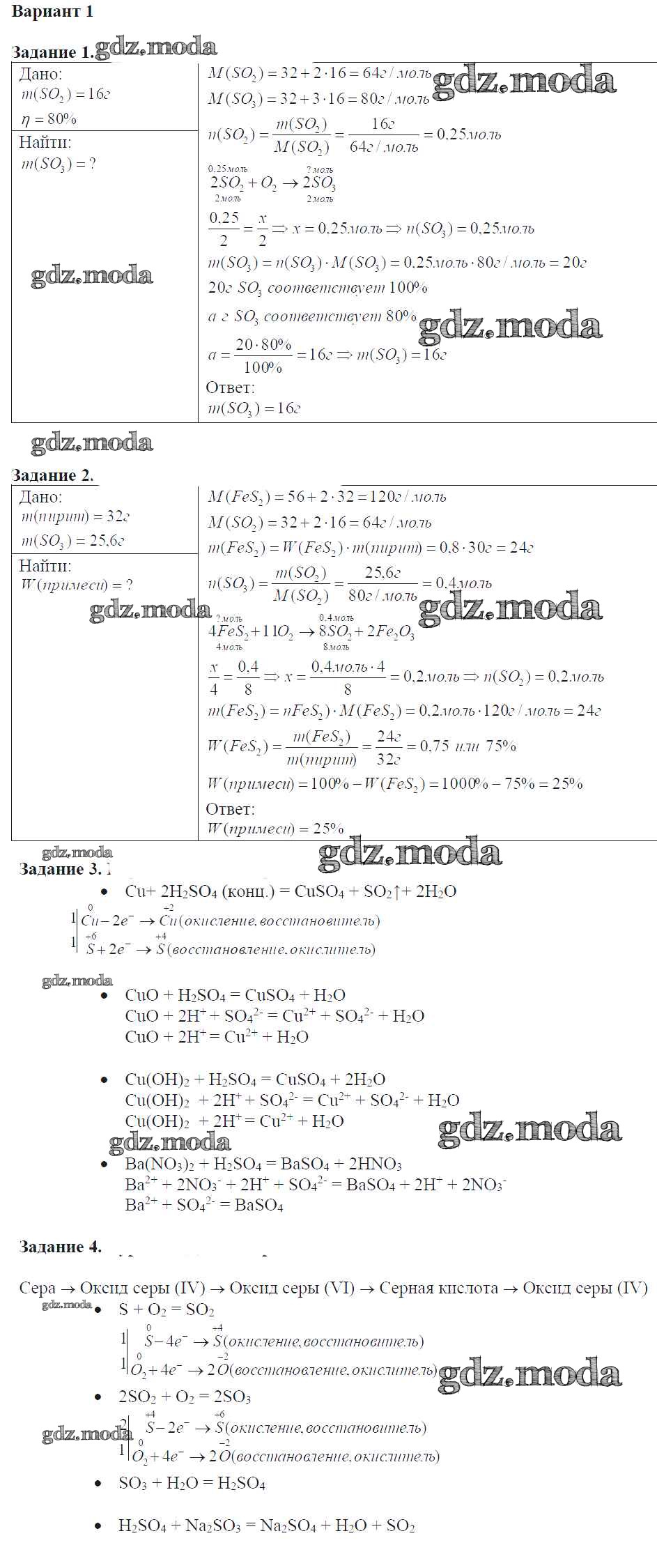 ОТВЕТ на задание № вариант-1 Задачник по Химии 9 класс Кузнецова Алгоритм успеха